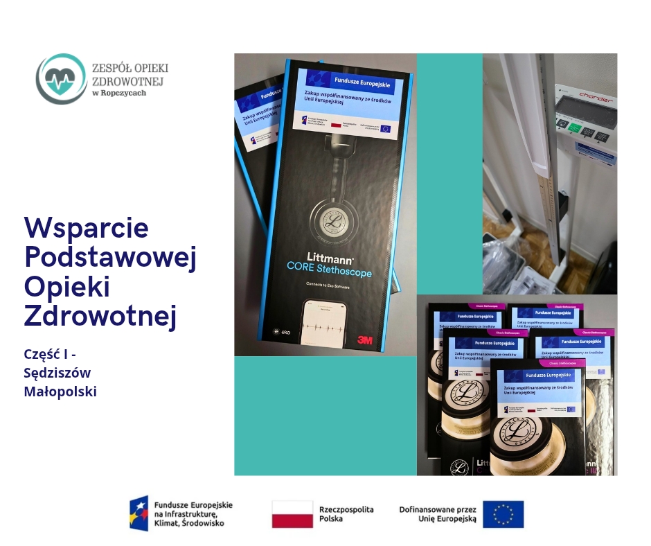 W ramach projektu grantowego „Wsparcie Podstawowej Opieki Zdrowotnej (POZ)” z programu Funduszy Europejskich na Infrastrukturę Klimat i Środowisko (FEnIKŚ), którego celem było zwiększenie dostępności i jakości usług medycznych świadczonych w ramach POZ w Przychodni Rejonowej w Sędziszowie Młp. poprzez doposażenie placówki w nowoczesny sprzęt i wyposażenie medyczne oraz komputerowe a także oprogramowanie telemedyczne zostały zakupione m.in.: